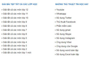 Hệ thống kiến thức và chương trình học cho các em từ lớp 1 đến lớp 12 bao gồm: sách giáo khoa, bài giảng, bài tập và hướng dẫn giải chi tiết. Chúng tôi cung cấp một kho tàng bài thi trắc nghiệm phong phú cho tất cả các môn học hiện có, cùng với những đề thi thử THPT Quốc Gia mới nhất để các em có thể ôn luyện hiệu quả.